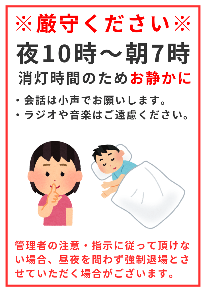 消灯時間は周りのお客様のご迷惑とならないよう、